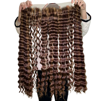 Deep Wave Frontal Wigs Brown Color 22 Inches 55 Cm Premium Standard Vietnamese Human Hair Best Quality