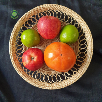 Hand woven basket rattan bamboo water hycinth seagrass basket for holding bread and fruit, objects Fashionable round