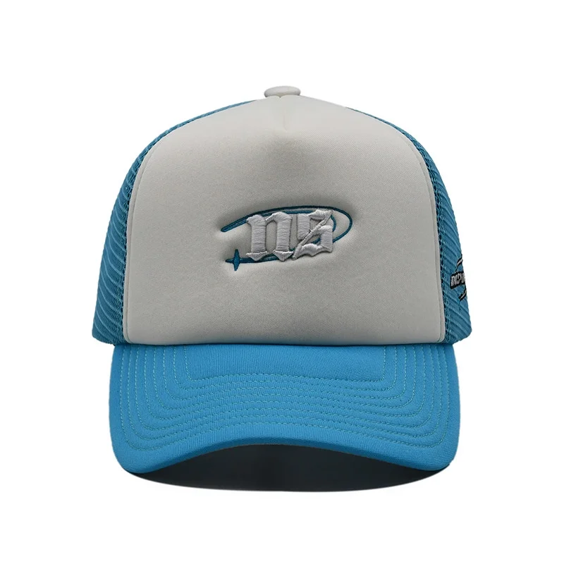 • Customized Embroidered Trucker Hats Custom Snapback Caps 5 Panels Light Blue Baseball Hat Vietnam Promotional Hat