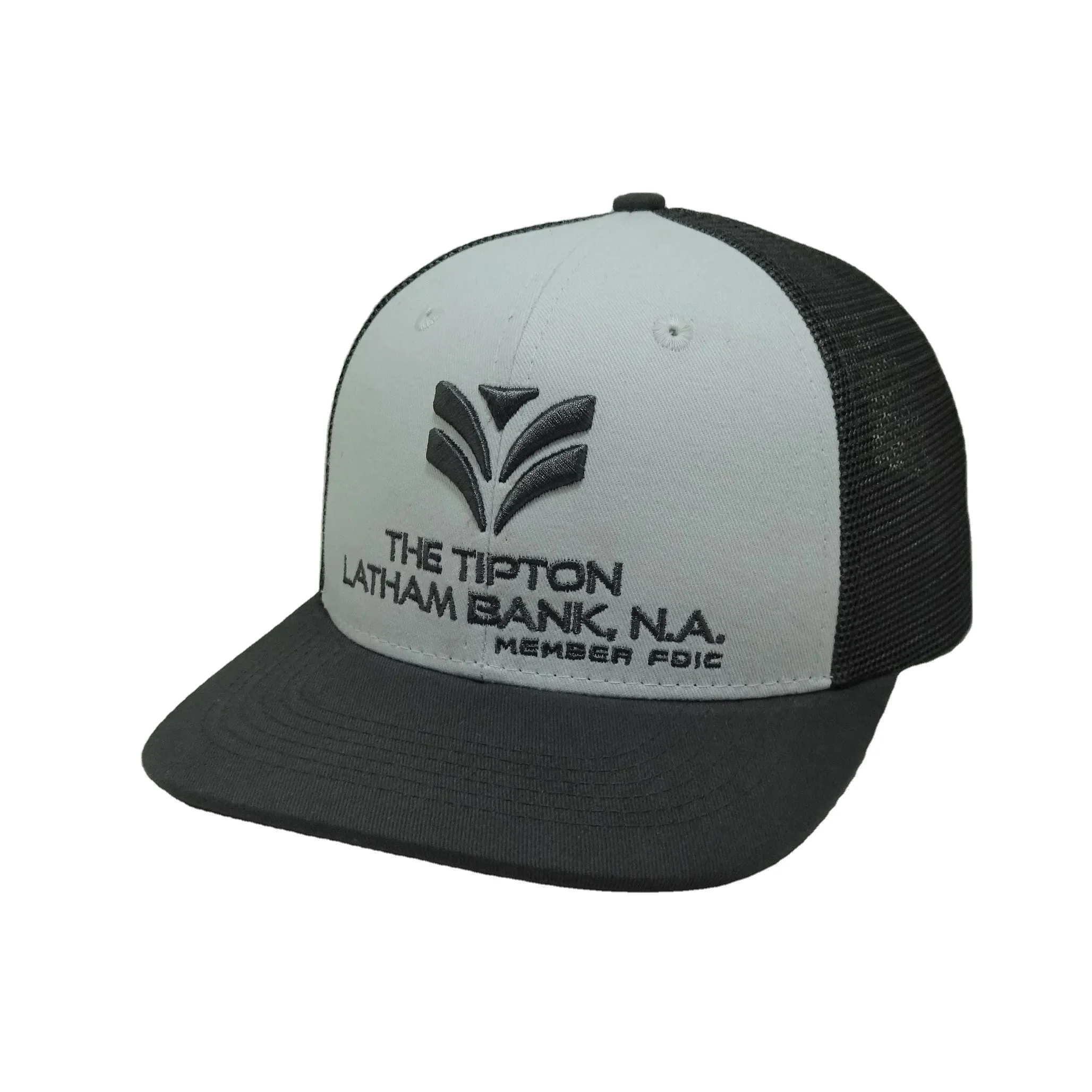 • Wholesale Products Trucker Hats Embroidery 6-Panel Curved Brim High Quality Grey Color Medium Profile Mesh Back Cap Trucker Hat